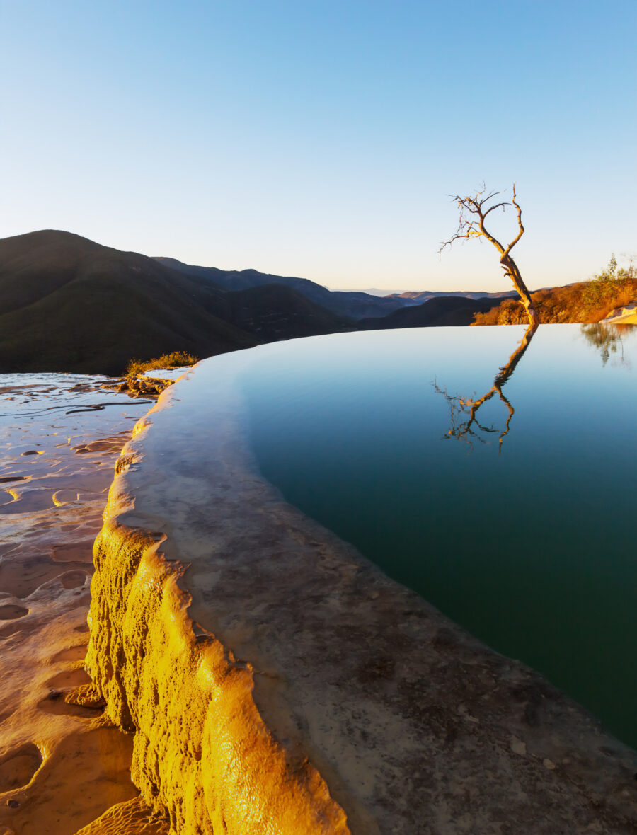 Hierve el Agua, guía para visitarlo A unos cuantos kilómetros de la capital oaxaqueña, se sitúa Hierve el Agua, un balneario natural, que ofrece una vista inigualable del valle. 3 min. Ver historia